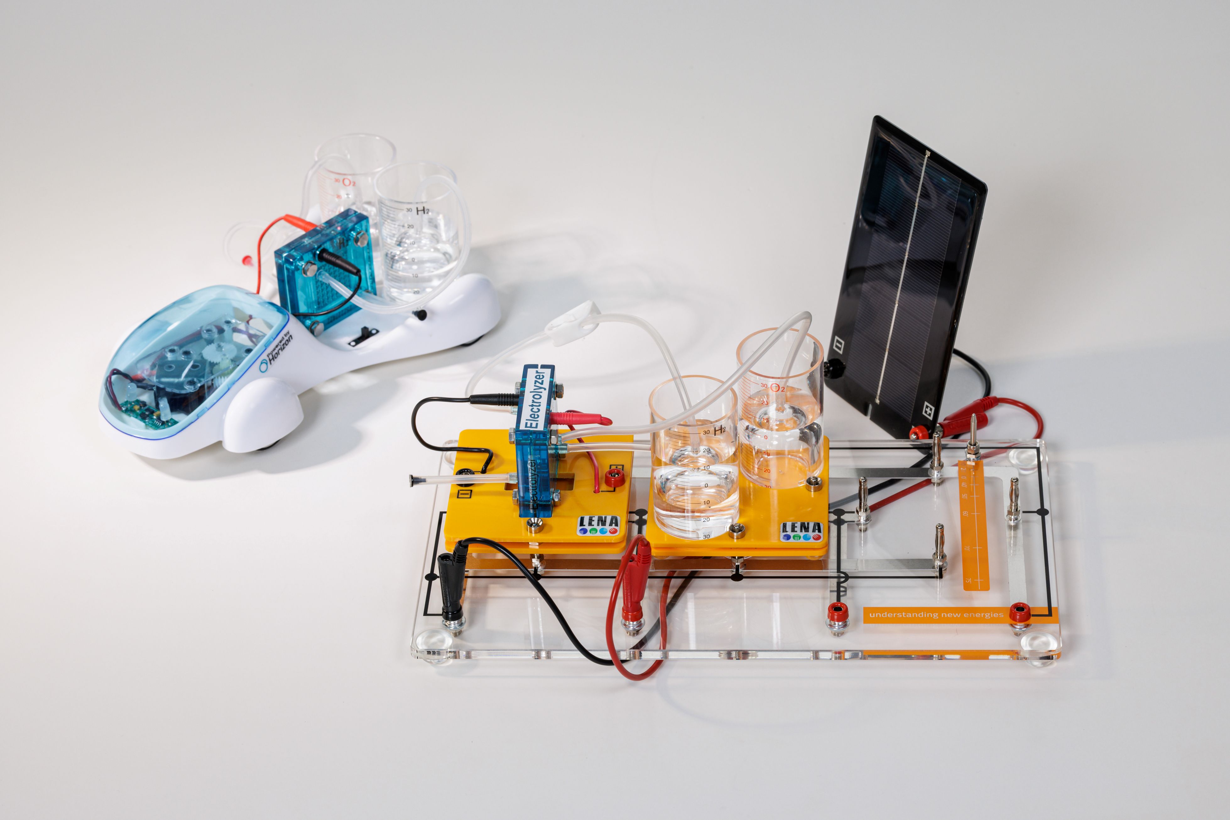 Dank eines Solarmoduls, eines Elektrolyseurs und einer Brennstoffzelle können Lernende einen Solar-Wasserstoff-Kreislauf aufbauen und untersuchen. Sie können sich dabei nicht nur mit den Grundlagen der Wasserstofftechnologie vertraut machen, sondern auch erfahren, wie erneuerbare Energien genutzt werden können, um Wasserstoff zu erzeugen und als saubere Energiequelle zu nutzen.