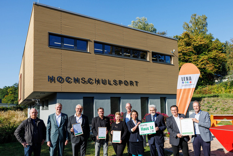 Sportzentrum der Hochschule Harz bekommt Grüne Hausnummer PLUS für nachhaltigen Neubau