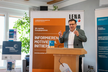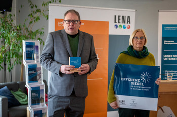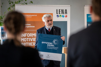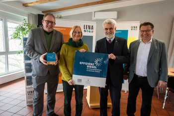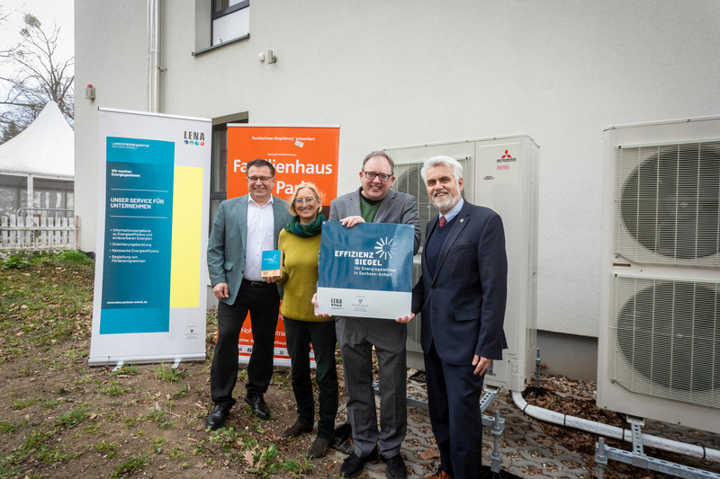 Der Minister für Wissenschaft, Energie, Klimaschutz und Umwelt des Landes Sachsen-Anhalt, Prof. Dr. Armin Willingmann, hat heute gemeinsam mit LENA-Geschäftsführer Marko Mühlstein das hochwertige Effizienzsiegel an die Geschäftsführer Marina Wölk und Thorsten Giefers überreicht.