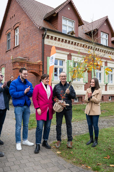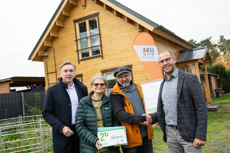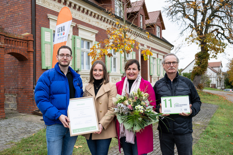Am Dienstag, den 4. November, wurden gleich zwei „Grüne Hausnummern Sachsen-Anhalt“ in Burg (bei Magdeburg) übergeben. Familie Illies erhielt die Auszeichnung für die energetische Sanierung ihres denkmalgeschützten Haupthauses eines Vierseitenhofes. Familie Radke hingegen wurde für den energieeffizienten Neubau ihres kleinen, aber feinen Alterswohnsitzes ausgezeichnet. Für die überwiegende Nutzung nachwachsender Baustoffe - in diesem Fall vorrangig Holz - erhielt sie sogar das Zusatzprädikat „PLUS“.