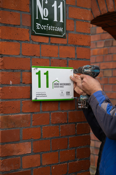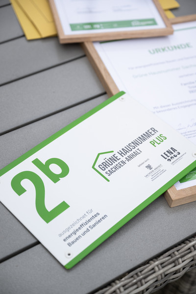 Überreicht wurden die beiden individuell angefertigten Hausnummern heute durch Energiestaatssekretär Thomas Wünsch, den Bürgermeister der Stadt Burg, Philipp Stark, Thomas Rochel von der Ingenieurkammer Sachsen-Anhalt und dem Prokuristen der Landesenergieagentur Sachsen-Anhalt (LENA), Dirk Trappe. Zusätzlich erhielten die Familien eine Urkunde als Anerkennung für ihr besonderes Engagement im Interesse des Klimaschutzes. Auch die an der Sanierung bzw. am Bau beteiligten Handwerksfirmen aus Sachsen-Anhalt wurden mit einer Urkunde gewürdigt.